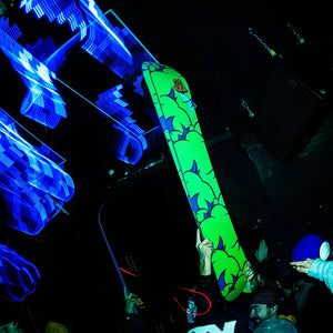 BEHIND THE ART: Dave Doman is a Salt Lake City–based artist and longtime force in the snowboarding design world. An SFK founder and key creative behind Celtek’s graphic-driven gloves and accessories, his graffitiinspired style of punchy color and whimsical monsters is instantly recognizable. Doman’s work has appeared on Technine and Nitro Snowboards, and in the children’s book Spots and Stripes, which he authored and illustrated.